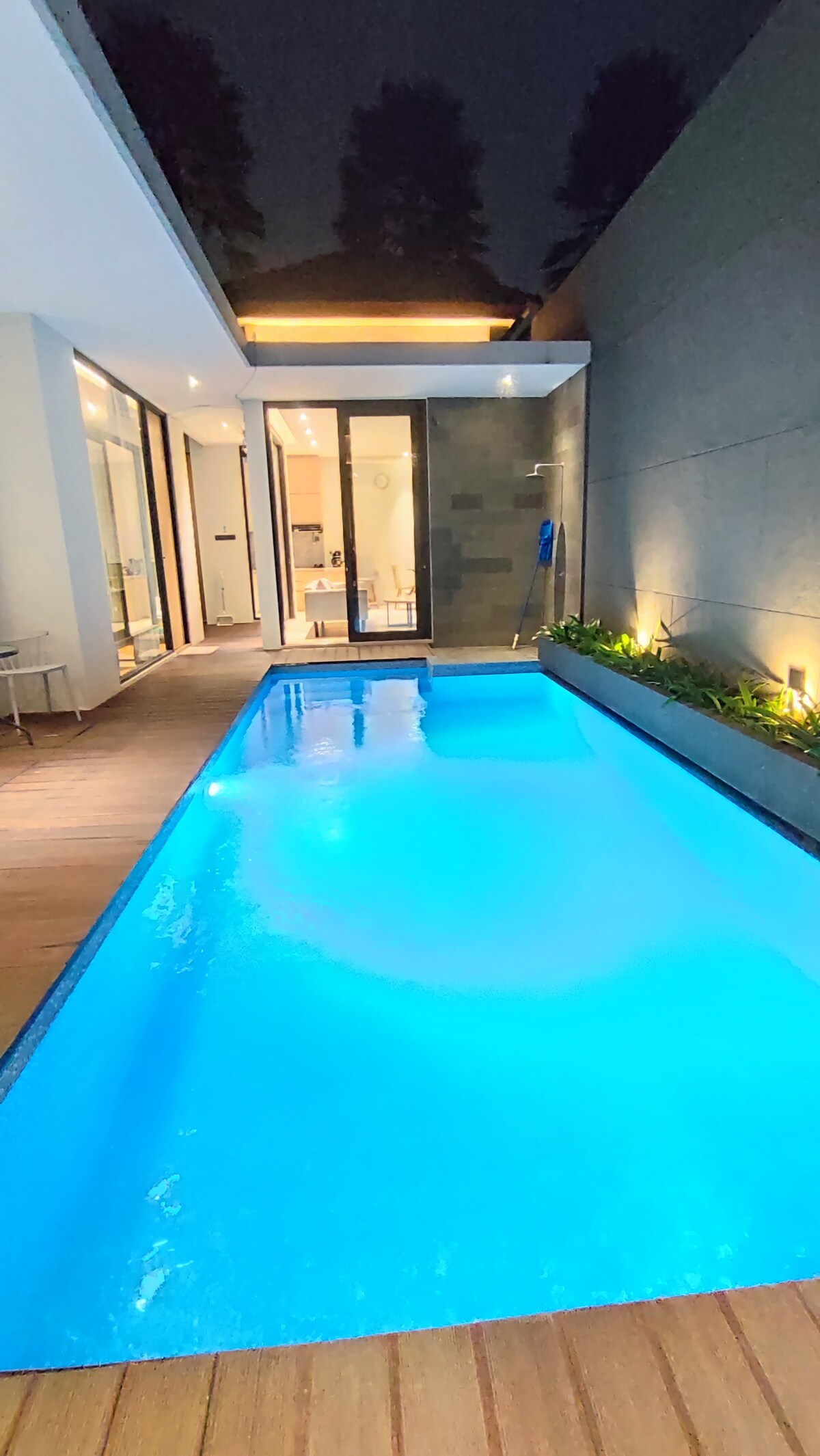 Deze unieke plek heeft een geheel eigen stijl. Faciliteiten : - Zwembadgrootte 1,8 x 5 meter - Woonkamer - 2 slaapkamers ( 1 slaapkamer op de tussenverdieping) - 1 badkamer met douche, warm water. - Warm en warm waterdispenser - 2 Smart TV 43 Inch - Gratis wifi - Karaoke - Keuken met koelkast - Licht koken is toegestaan - Schone handdoeken - Zeep en shampoo - Barbecue