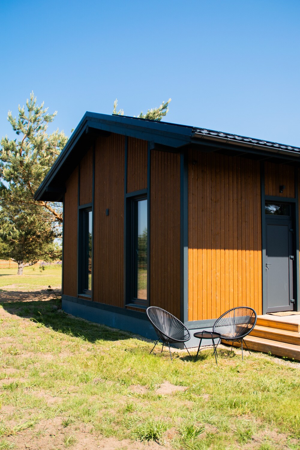 This is a cottage overlooking the meadow and the nearby forest. The cottage has a small terrace, where you can enjoy your time and relax. There is a small kitchen area and a bathroom with a shower. The cottage is located in country estate Lūķi, 2km to the beach. The estate has a picturesque landscape with large oaks, a tea garden, an authentic sauna, and garden shed. There is also a salon with an exhibition of handicrafts.