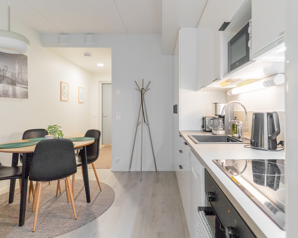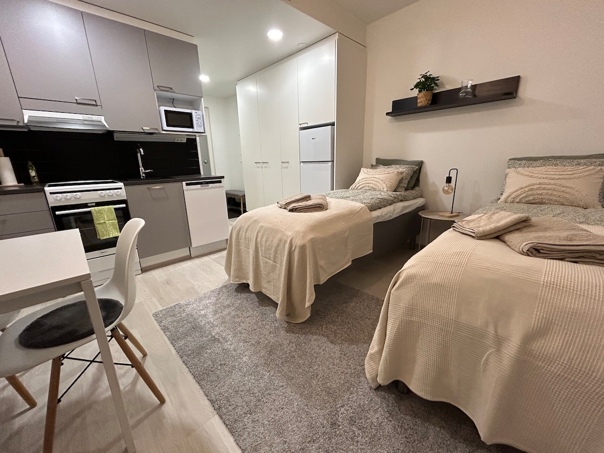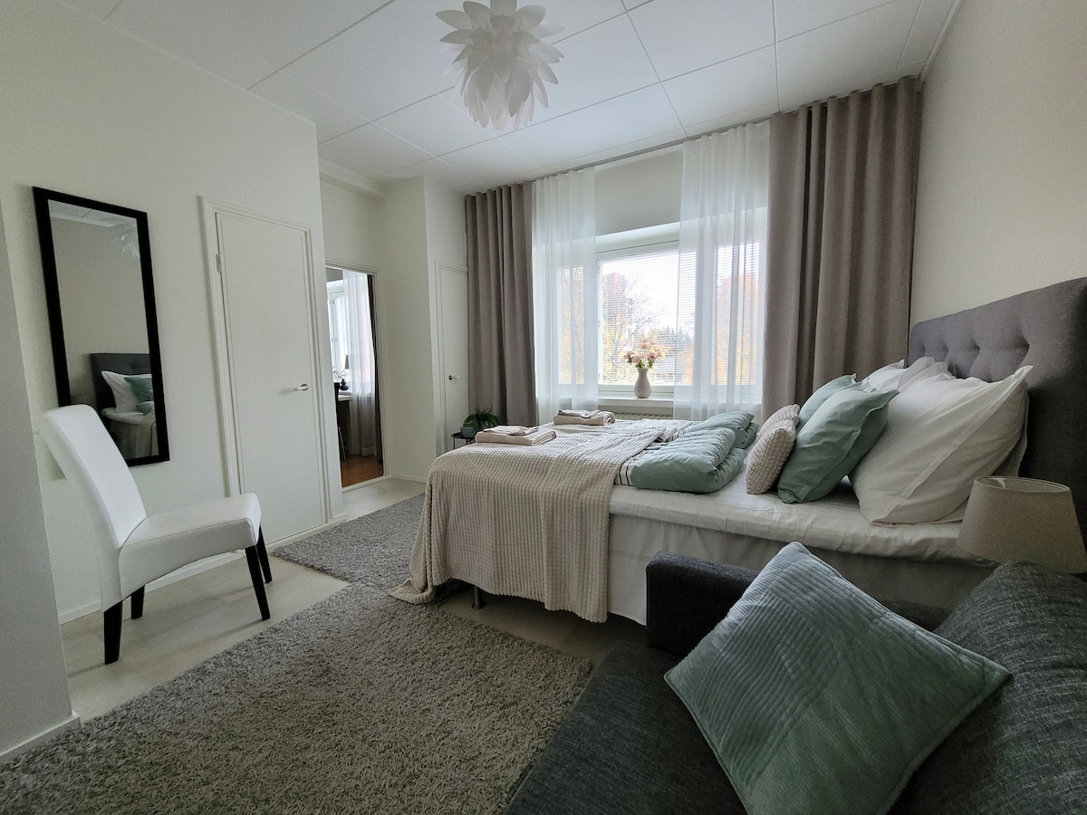 Nieuwe tweekamerappartement, Satamakatu, sauna en balkon
