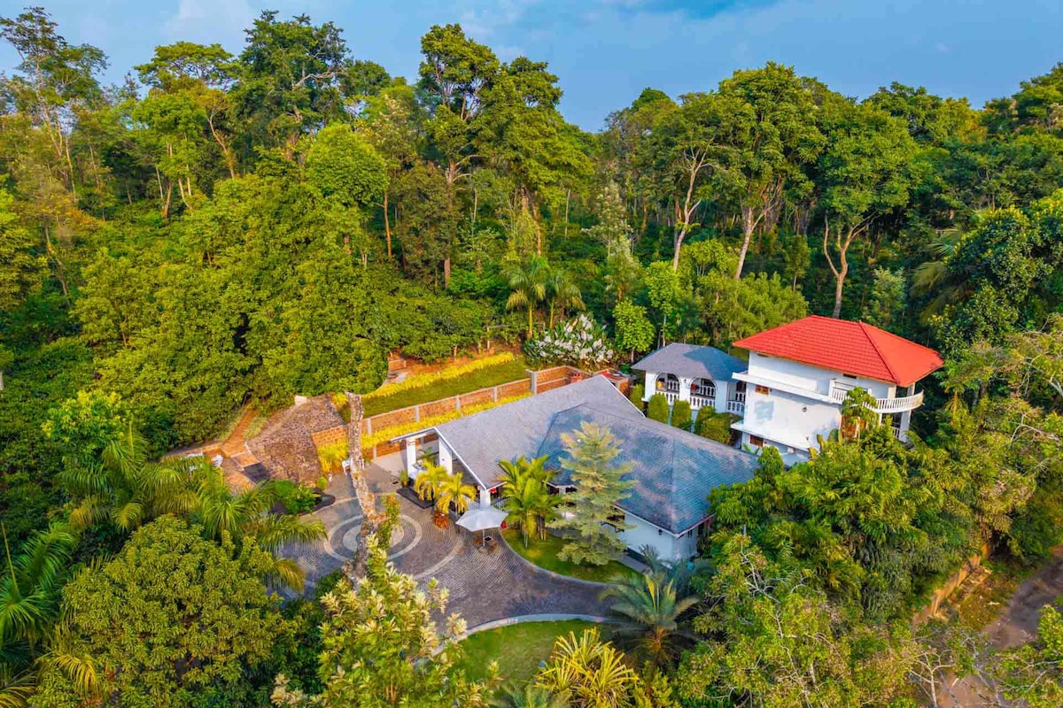 Drey @ Druv Dakshin farms! A sanctuary crafted for privacy, this charming 2100 sq. ft. Villa features exclusive dining area, property chef services , and a private tree hut. Just steps from Meenmutty Waterfalls and a 7-minute drive to Banasura Sagar Dam. With 2 air-conditioned bedrooms and a convertible air-conditioned bed/living room, it sleeps 8 adults and 2–3 kids. Enjoy stunning Bana Hills views from the veranda and pool—your peaceful yet connected escape. We welcome your furry companions