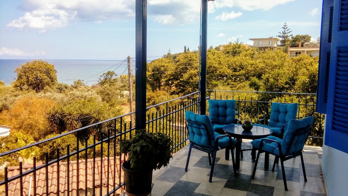 This house is a tribute to our dearest mother Ioanna who was born in this village and her wish was a house by the sea she so adored. It's our family getaway, our childhood paradise of joy,swimming and daydreaming. We are happy to host guests and families who love nature, sea and peace. Enjoy its special vibe and location, amazing sea view, peaceful surrounding with no direct neighboors. Nested in a private 2hectares olive grove, 20metres from a peaceful beach, 5' walk from the market&taverns.