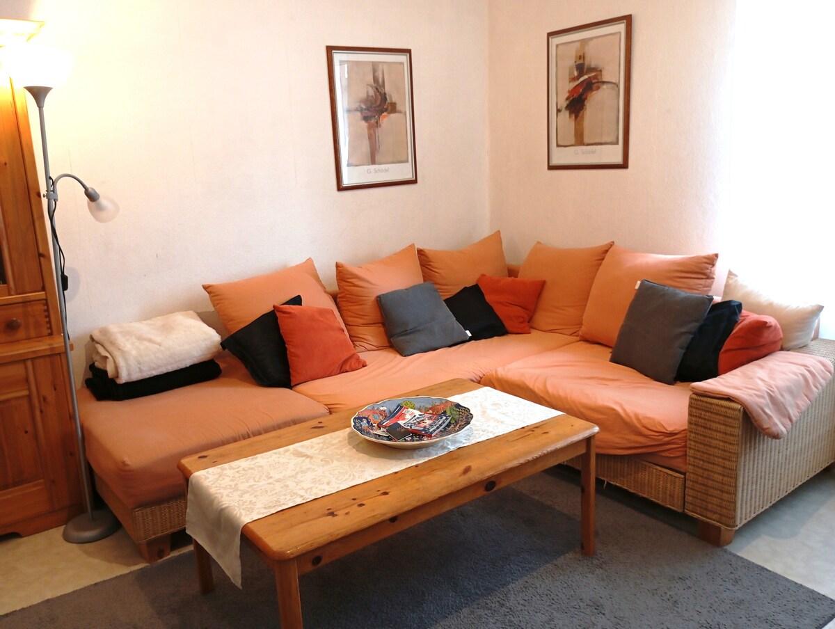 Ons huis is gelegen op een heuvel in een echte rustige woonwijk. Het gemoderniseerde rookvrije appartement heeft twee slaapkamers met kingsize bedden, een woonkamer met een ligbed, een volledig gerenoveerde badkamer en een nieuwe keuken-woonkamer. Onze gasten worden uitgenodigd om gebruik te maken van de grote tuin - tuinmeubilair, een parasol en een Weber-Grill is beschikbaar. We hebben een parkeerplaats vlak voor ons huis gereserveerd, speciaal voor onze gasten.