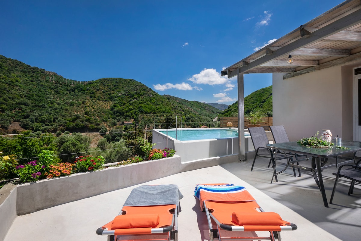 Villa Karma is a traditional 2-bedroom villa with a private pool of about 15 sqm, located in the peaceful village of Kakopetros, 11 km from the small town of Voukolies. It is an ideal place for nature lovers. A traditional cafe is within walking distance, while a tavern and a mini-market are about 6 km away. A few tavernas and a supermarket are available in Voukolies, about 11 km away, while the nearest shingle beach is in Tavronitis, around 19 km away. A car is needed for your holidays.