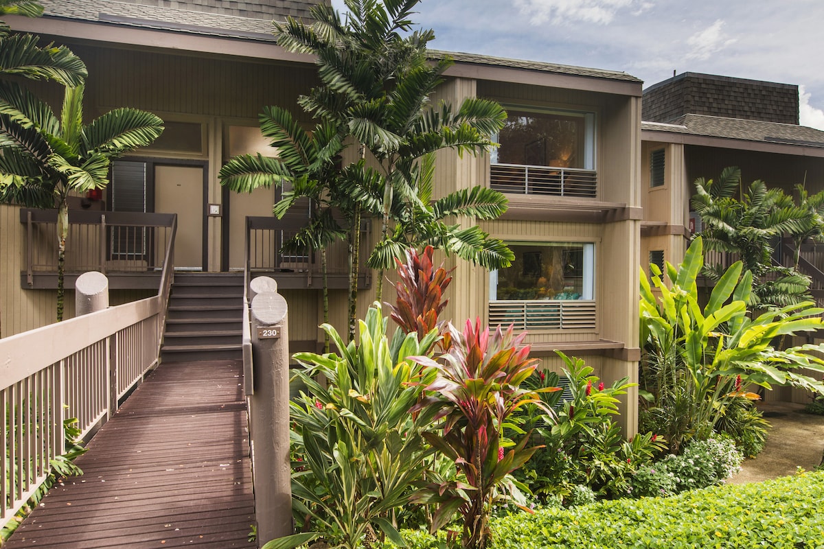 Lichte bovenste verdieping Princeville Condo met airconditioning en zwembad!