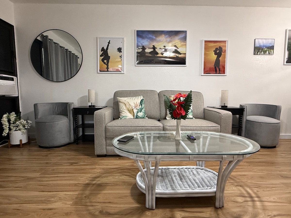 Luxe Marriott Vacation Club resort. Verblijf in een prachtige suite met uitzicht op de tuin en een kitchenette. De kamer heeft een Queen Murphy Bed. Leg het bed gemakkelijk weg en heb een mooie leefruimte voor overdag. Dichtbij ongelooflijke wandelingen. Inclusief gratis pendeldienst van/naar de luchthaven en parkeren. Restaurants op het terrein. Tarieven is minder dan de HELFT van wat je rechtstreeks bij het hotel zou betalen. Bubbelbaden, zwembaden, lang pad langs het strand. Aarzel niet om me te contacteren voor een verblijf van dezelfde dag en ik zal de beschikbaarheid controleren
