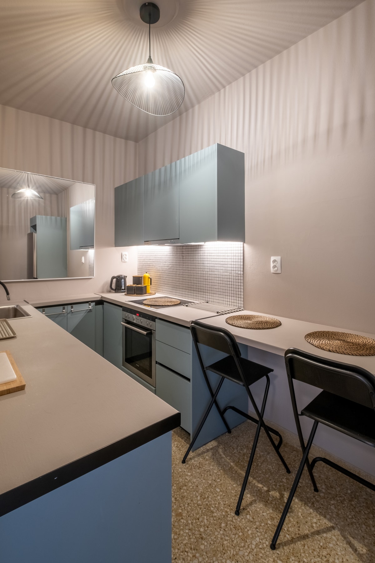 Modern, gezellig en volledig ingericht studio-appartement ideaal gelegen in Tavros, op slechts 10 minuten van het centrum van Athene (Monastiraki, Thissio) en op minder dan 15 minuten van de haven van Piraeus (ideaal voor eilandhoppen). Deze lichte en van airconditioning voorziene flat is gelegen op de 4e verdieping van een rustig gebouw en omvat: Semi-dubbel bed en slaapbank Volledig uitgeruste keuken Gratis Wifi & Netflix Vers beddengoed en handdoeken Eigen ingang met lift Perfect voor koppels, soloreizigers of digitale nomaden!