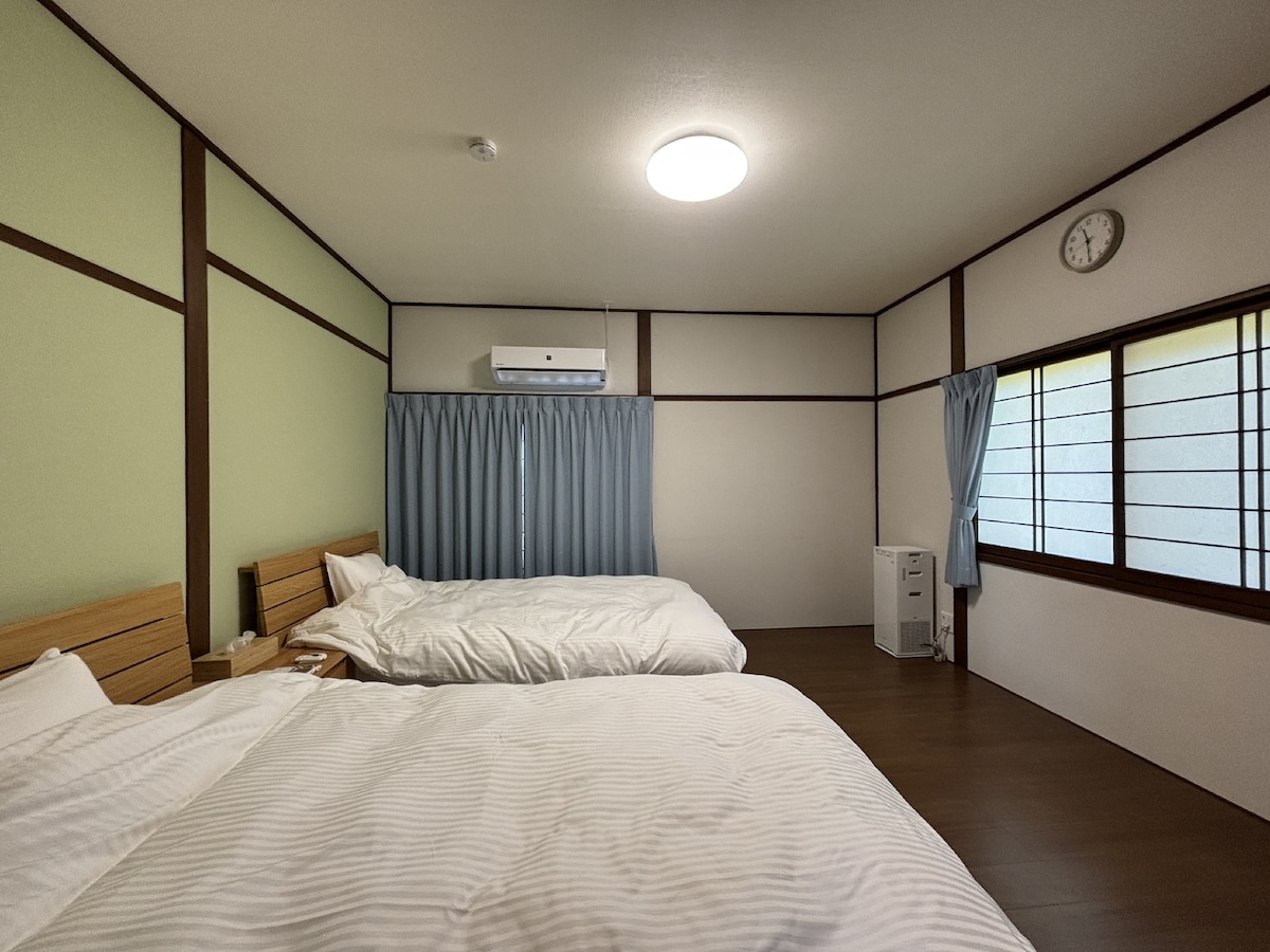 Het is een hut gemaakt van binnenlandse cederhout waar kinderen met gemoedsrust kunnen verblijven.We hopen dat jij en je familie zullen genieten van je verblijf in onze biologische hut. Er is ook een strand net om de hoek van de faciliteit. Dolphin Watching dock ligt op ongeveer 17 minuten rijden🚗 Kamerinformatie ▶Geschikt voor 5 ▶50 ㎡ ▶Een op de eerste verdieping van het bad ▶Een op de eerste verdieping van het toilet ▶ 2 slaapkamers op de eerste verdieping (1 tweepersoonsbed, 2 eenpersoonsbedden, 1 futonset) ▶Er is WiFi beschikbaar. ▶Volledig uitgerust met airconditioning in elke kamer (3) ▶Gratis parkeren voor maximaal twee auto's ▶Er is een stopcontact voor elektrische voertuigen ▶Haardroger, recht en krultang Zorg ▶voor reiniging, gezichtsreiniging, lotion, emulsie ▶Voorzieningen • • • Tandenborstel, douchegel, shampoo, conditioner en douchegel