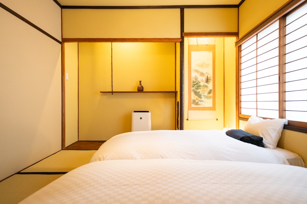 [100 jaar oud Kyoto herenhuis x modern comfortabel verblijf] | Kiyomizu Tempel, Gion en Kawaramachi zijn ook op loopafstand | Geschikt voor maximaal 8 personen Een 100 jaar oud Machiya herenhuis in het historische Kyoto Shimizu Gojo gebied, gerenoveerd in 2025. Een 3LDK privé herenhuis perfect voor gezinsreizen en groepsverblijven, waar traditionele architectuur en comfort samenkomen om een "woonachtig Kyoto-verblijf" te creëren. Ervaar de rust van het goede oude Japan, alsof je teruggaat in de tijd. 🛌 Kamer Groepsaccommodatie: 3 slaapkamers (2 semi-dubbele bedden, 1 queensize bed, 2 Japanse futons) + 2 slaapbanken in de woonkamer * Beddengoed is onderhandelbaar Verfijnde Japanse moderne ruimte: een samensmelting van modern koperen meubilair en decoraties in Japanse stijl die gebruik maken van shoji en tatamimatten Langetermijnverblijven welkom: met een wasmachine en droger, en een volledige keuken, kun je met een gerust hart koken en je eigen kleren wassen. Vol entertainment: geniet van films en games met Nintendo Switch en projector Gratis fietsen (4): handig om te wandelen en bezienswaardigheden te bezoeken in de omgeving Geweldige 🚶♀️ toegang 8 minuten lopen naar het dichtstbijzijnde Shichijo Station/Kiyomizu Gojo Station Gion en Kawaramachi liggen op 15 minuten lopen Eén trein naar Osaka op de Hankyu-lijn Het is ook gemakkelijk om belangrijke toeristische bestemmingen te bereiken, zoals Kyoto Station, Kiyomizu Temple, Fushimi Inari, Nijo Castle en Arashiyama