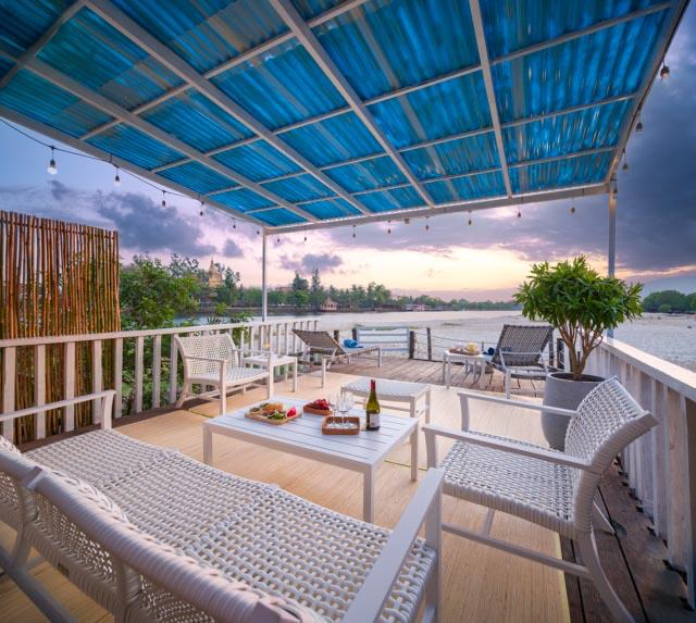 Chill out and enjoy the peace and quiet, sea and river breezes, views of Bokor Mountain. On a clear night, you can peer into the Milk Way. Located on Fish Island, 12 minutes (6 km) south of Kampot town centre, on absolute riverfront. We provide Honda motos for $3 - 4 per day, or you can use the Cambodia Passap or Grab app to book tuk tuks. We have a floating pontoon, kayaks, and stand up paddle boards to add to the fun list of activities.