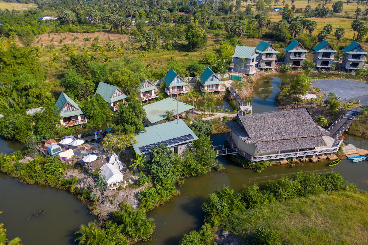 Welkom bij Bohemiaz, je serene ontsnapping op slechts 4 km van Kampot-stad! Onze milieuvriendelijke retraite ligt in een adembenemend platteland en biedt een mix van ontspanning en avontuur. Duik in ons natuurlijke zwembad, ontspan in de jacuzzi of verjong jezelf met spabehandelingen. Geniet van de levendige sfeer in ons restaurant en bar, waar heerlijke westerse en Khmer-gerechten worden geserveerd. Ervaar de warme, gastvrije sfeer die van Bohemiaz een bijzondere plek maakt om contact te maken en tot rust te komen.