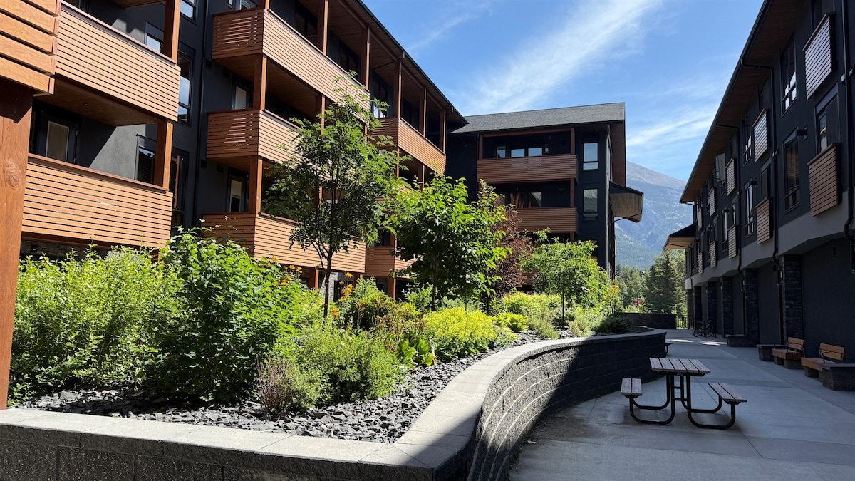 Welkom bij je rustige en stijlvolle Canmore-uitje! Dit luxe appartement ligt op slechts 10 minuten lopen van het stadscentrum, waardoor winkels, restaurants en wandelpaden direct voor de deur liggen. Ontspan bij de gezellige stenen open haard, zak in een zacht kingsize bed of ontvang extra gasten op de hoogwaardige slaapbank. Geniet van een lichte, luchtige woonruimte, een volledig uitgeruste keuken, een eigen wasserette, gratis parkeergelegenheid en snelle wifi van 1 GB. Ideaal voor avontuur of ontspanning in de Rockies.