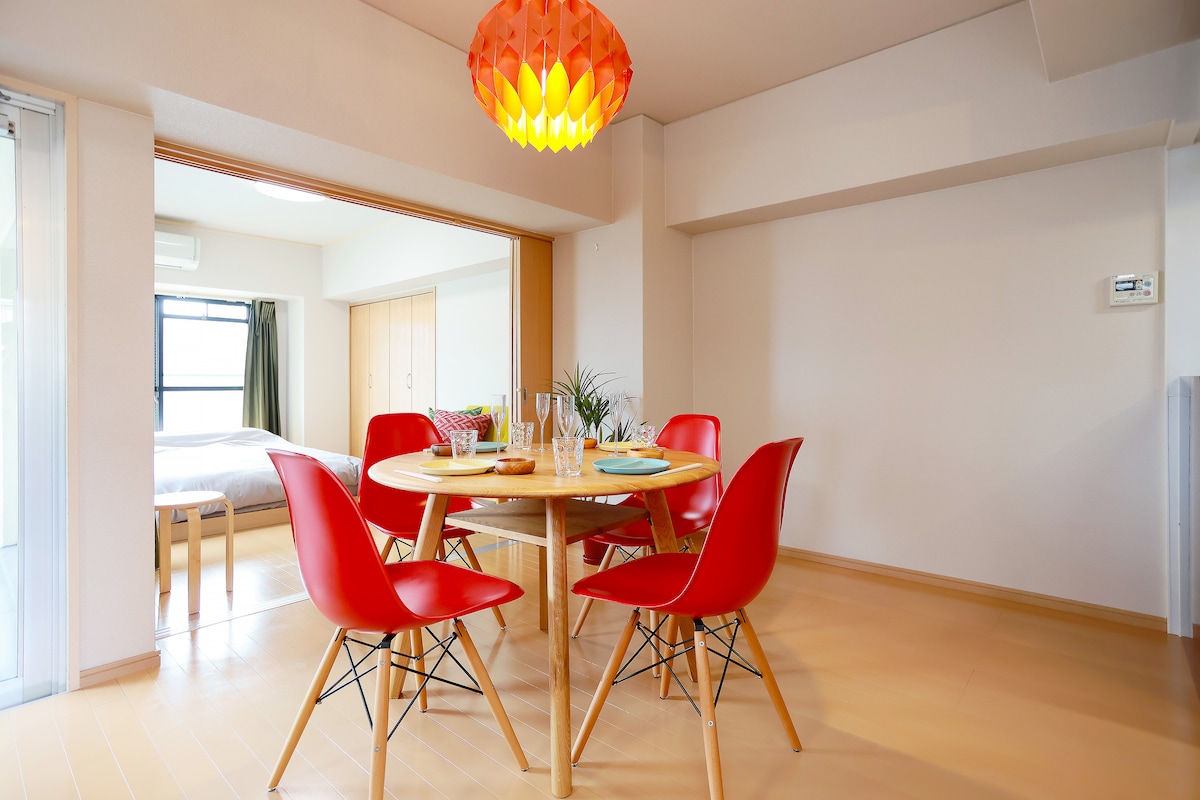 Gemiddelde beoordeling van 4,91 uit 5, 11 recensies[Nieuw Open] Kokura gebied | Natuurlijke moderne kamer met rode stoel | Maximaal 4 personen