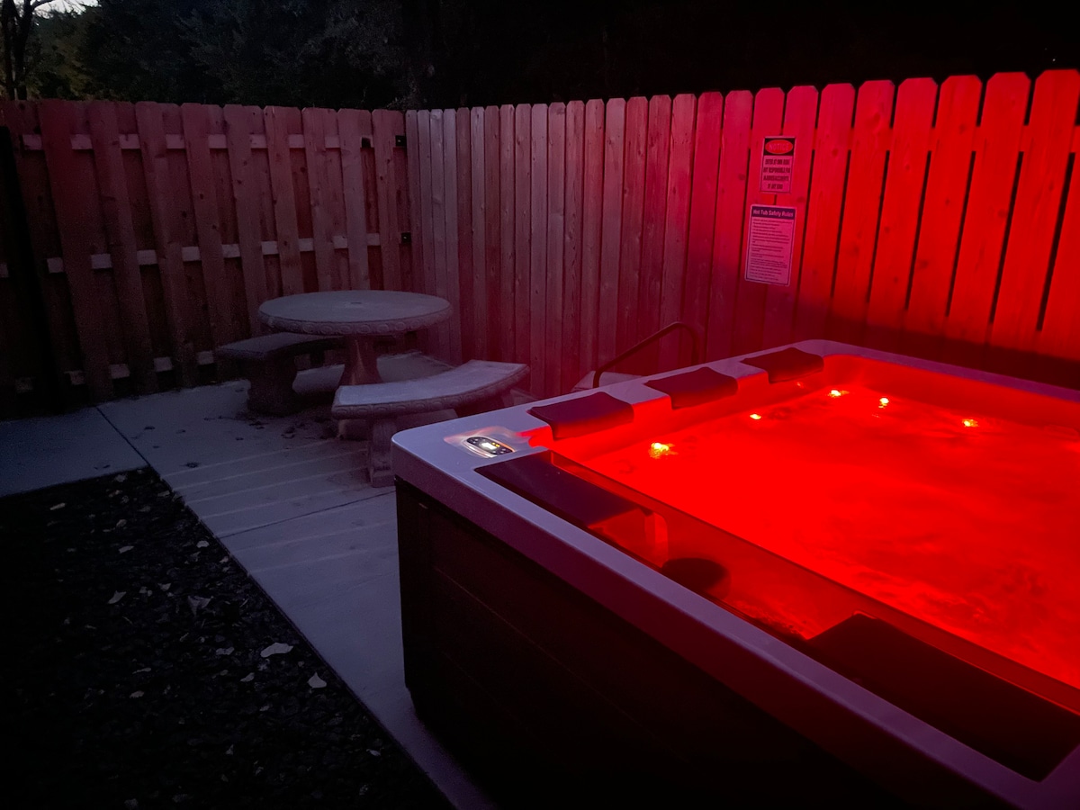 Kathy's Kottage (in de buurt van Legends) bubbelbad-vuurplaats