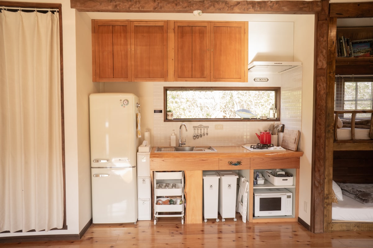 Yamakujira Sou is een 50 jaar oud kusthuisje dat is gerestaureerd door een lokale surfer-/jagersfamilie. In de geest van hergebruik en recyclen zijn bijna alle bouwmaterialen afkomstig van vervallen lokale gebouwen, en de eigenaren hebben het huisje in 3 jaar met de hand herbouwd. Yamakujira Sou ligt op 2 minuten lopen van het strand en biedt een nagenoeg privé-surfspot. Het is een rustige, warme ruimte waar je kunt ontspannen en kunt genieten van de sfeer van het platteland van Boso. We hebben 2 fietsen die onze gasten gratis kunnen gebruiken.