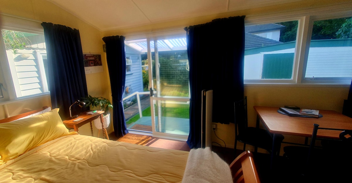 Op minder dan 500 meter van het strand en het dorp Raumati past de studio comfortabel voor 2 personen, maar biedt plaats aan maximaal 3 personen. Een wandeling van vijf minuten naar verschillende cafés en eetgelegenheden. Volledig zelfstandig met kleine badkamer en kitchenette. Ongeveer 40 minuten naar Wellington stad. Je wordt verwelkomd door onze vriendelijke en enthousiaste hond die in de afgesloten achtertuin van onze plek woont.