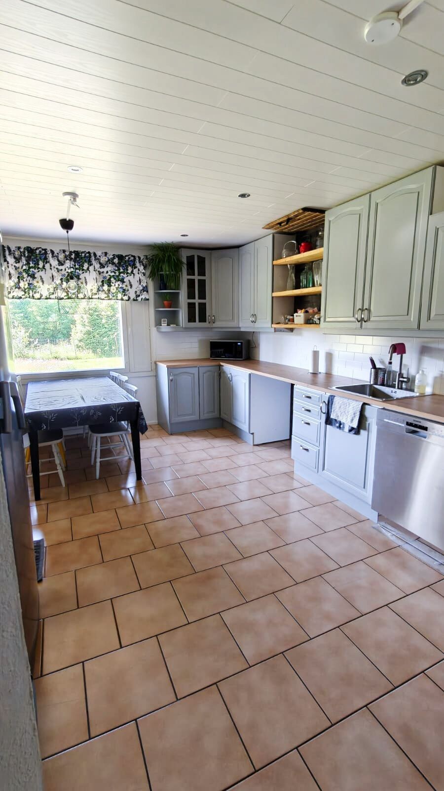 Heerlijke cottage bij Kalkkistenkoski. Op het grote terras kun je barbecueën, eten, genieten van de avondzon, zitten op de ligstoelen of het vogelleven op de stroomversnellingen volgen. Het bubbelbad en de sauna zijn verwarmd en de open haard zorgt voor sfeer. De keuken heeft alles wat je nodig hebt, en de grill en vuurplaats op het strand zorgen voor een breed scala aan vakantiekoken. Er is warm water voor de sauna en keuken, drinkwater wordt in de bussen naar het huisje gebracht. Puucee direct naast het huisje. De auto kan helemaal naar het erf.