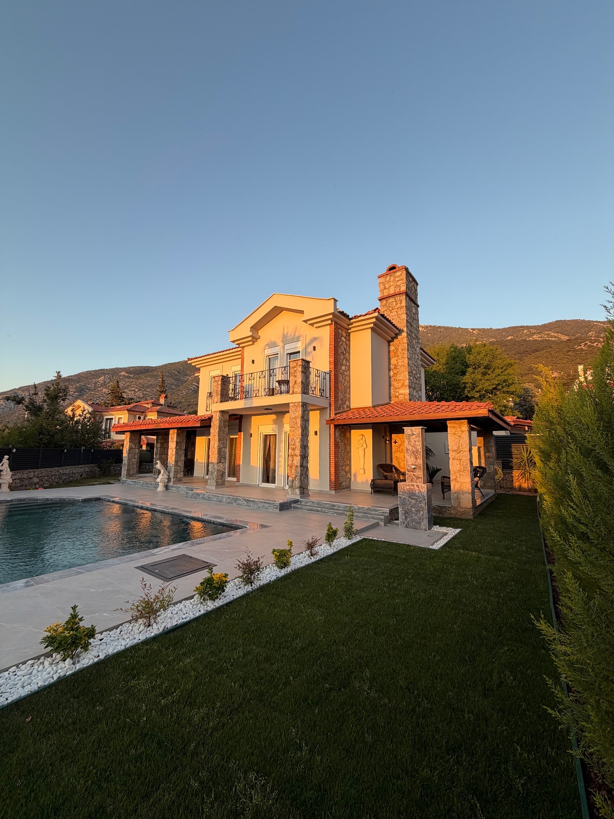 - Dit is op zo 'n locatie - Op de groenste plek in Fethiye - 200 vierkante meter beschutte privétuin - Zeer dicht bij zowel de zee(5 km), Fethiye(15 km) als Ölüdeniz(30) - Beide in Fethiye en in het bos - Ongelooflijk geïsoleerd - Het interieur van het huis is van hout - Gloednieuwe onberispelijke items - Een tweepersoons bubbelbad - Privézwembad in de tuin - Genieten van een barbecue -met parkeren - Vervoer wordt verzorgd vanaf de luchthaven van Dalaman. (Betaald) - Zwembaden zijn eind april geopend voor gebruik. - Zwembaden zijn begin oktober gesloten voor gebruik