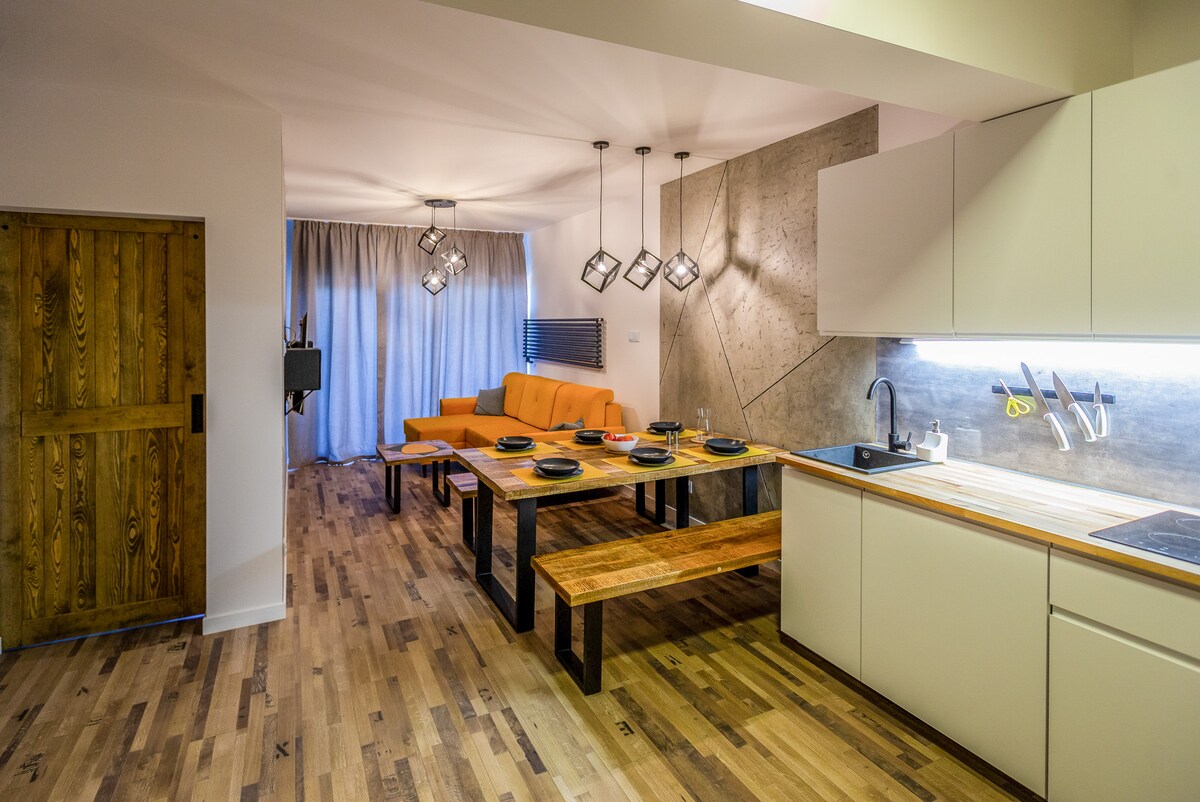 Prachtig uitgerust appartement in een modern gebouw uit 2022. 5 minuten lopen van de beste restaurants, minder dan 20 minuten naar het Nationaal Park. Ondergrondse garage, slaapkamer, woonkamer met kitchenette uitgerust met wasmachine, vaatwasser, koelkast, magnetron en automatisch koffiezetapparaat. 7 comfortabele slaapruimtes (bed met premium matras, 3 eenpersoonsbedden + slaapbank). 55inch tv met Hifi-luidsprekers. Een balkon met een prachtig uitzicht op de bergen. Het appartement is gelegen op de eerste etage.