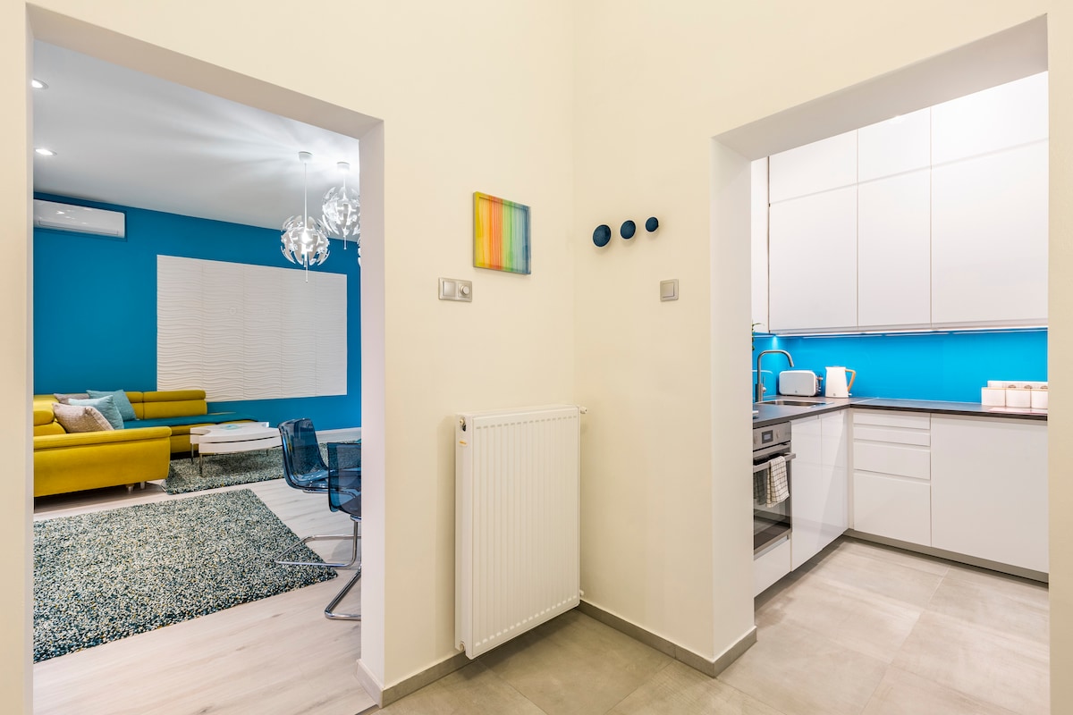 Het stijlvolle appartement van één bed van 75 m ² is volledig gerenoveerd met een stijlvol design in een mooi huis uit het midden van de eeuw. Het appartement is op de tweede verdieping met een lift in een zeer rustige omgeving in het gebouw. Gelegen in een van de meest modieuze gebieden van Boedapest met de beste bars, pubs, restaurants, musea, galeries, designer kledingboetieks, winkels en historische architectuur voor je deur. Het appartement heeft één slaapkamer, een woonkamer, een volledig uitgeruste keuken en één badkamer.