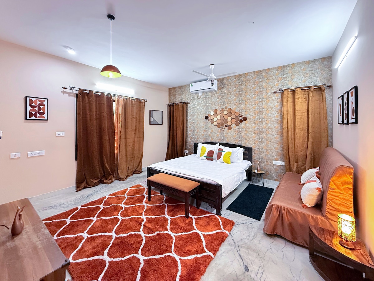 Welkom bij je serene ontsnapping aan Sarjapur Road, Bangalore. Onze nieuw ontworpen Airbnb ligt naast een pittoreske biologische vijver en biedt modern comfort en natuurschoon. Met een loftslaapkamer, stijlvolle inrichting is dit het perfecte toevluchtsoord voor je verblijf. Hebben we al gezegd dat ons verblijf ook huisdiervriendelijk is?