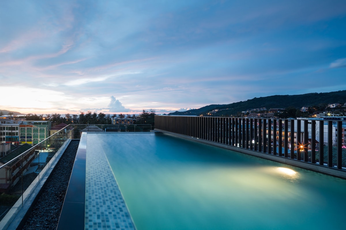 Luxe appartement met één slaapkamer in het centrum van Patong, met volledig uitgeruste keuken en groot balkon. Er zijn 2 zwembaden: een op de begane grond en de andere op het dak met een fantastisch uitzicht op zee. Gratis fitnessruimte, gratis parkeerplaats tijdens uw verblijf. En er is ook een wasruimte op de gelijkvloers. 24-uursbeveiliging, warm water voor douche, snelle en eigen wifi, tv (kan Netflix kijken), airconditioning, haardroger, koelkast.