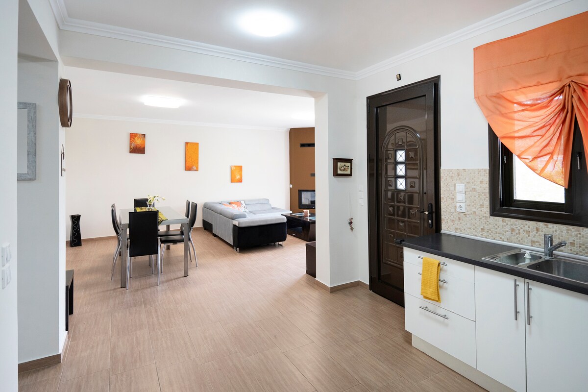 Ontspan en kom tot rust in deze rustige, stijlvolle ruimte. Landhuis volledig gerenoveerd, 100 m ² met 267 m ² balkons en tuin, aan de rand van het prachtige en rustige dorp Mulki, 3,5 km van de zee en de prachtige stranden, en op 1,8 km van de archeologische vindplaats en museum van het oude Sikyon. Deze residentie is perfect voor families en koppels. 2 Volledig uitgeruste keukens, 2 volledig uitgeruste badkamers, 2 superieure bedden voor twee, 2 eenpersoonsbedden en slaapbank voor twee, snelle wifi, smart-tv.