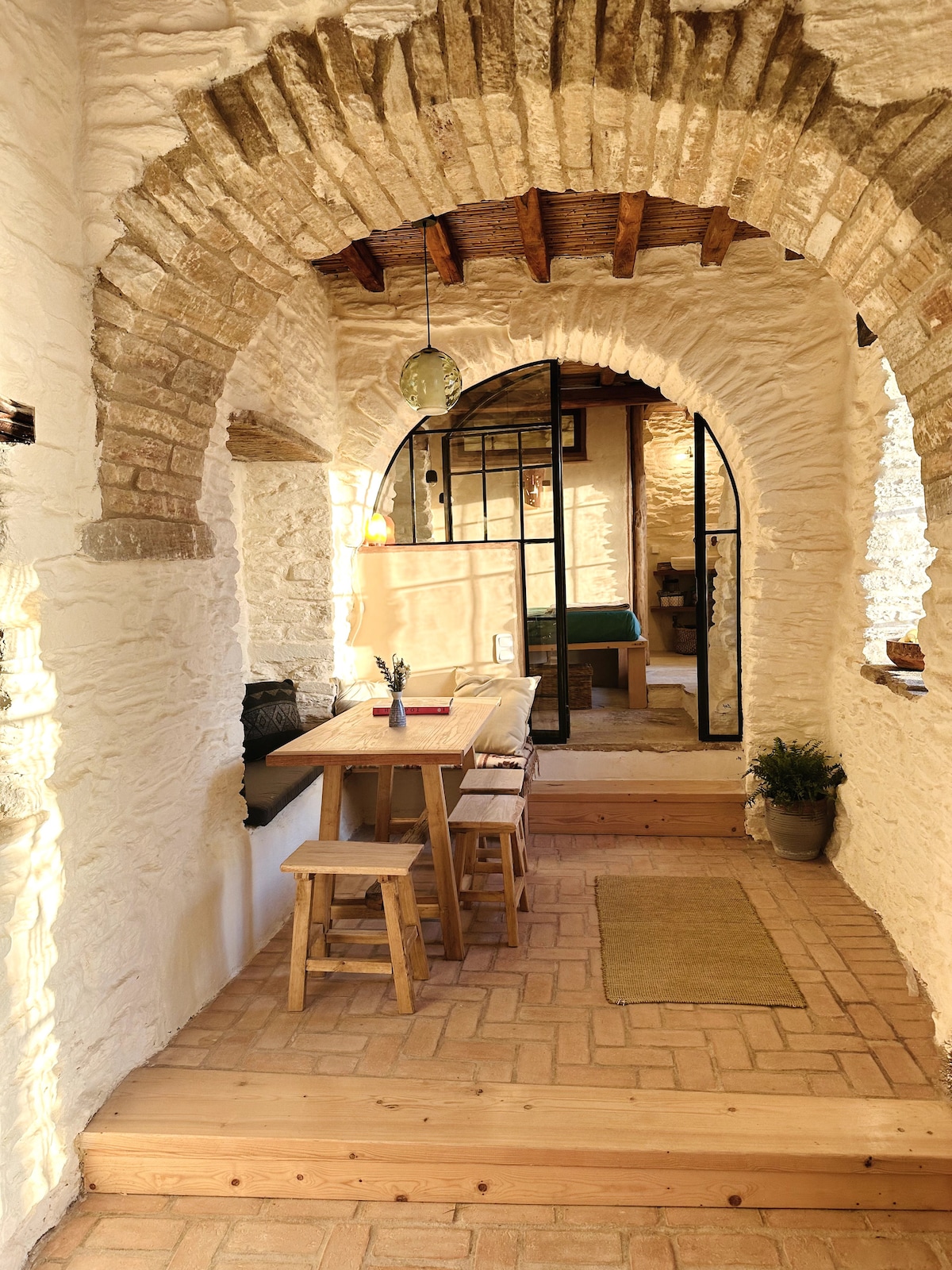EARTHY is a centuries-old Cycladic home given fresh life in the village of Isternia. Utmost attention has been given to highlight the building's organic and idiosyncratic nature. The stunning archways, 100% natural plasters, brick-laid floors, and garden patio make this space a unique and tranquil getaway. Come get EARTHY!