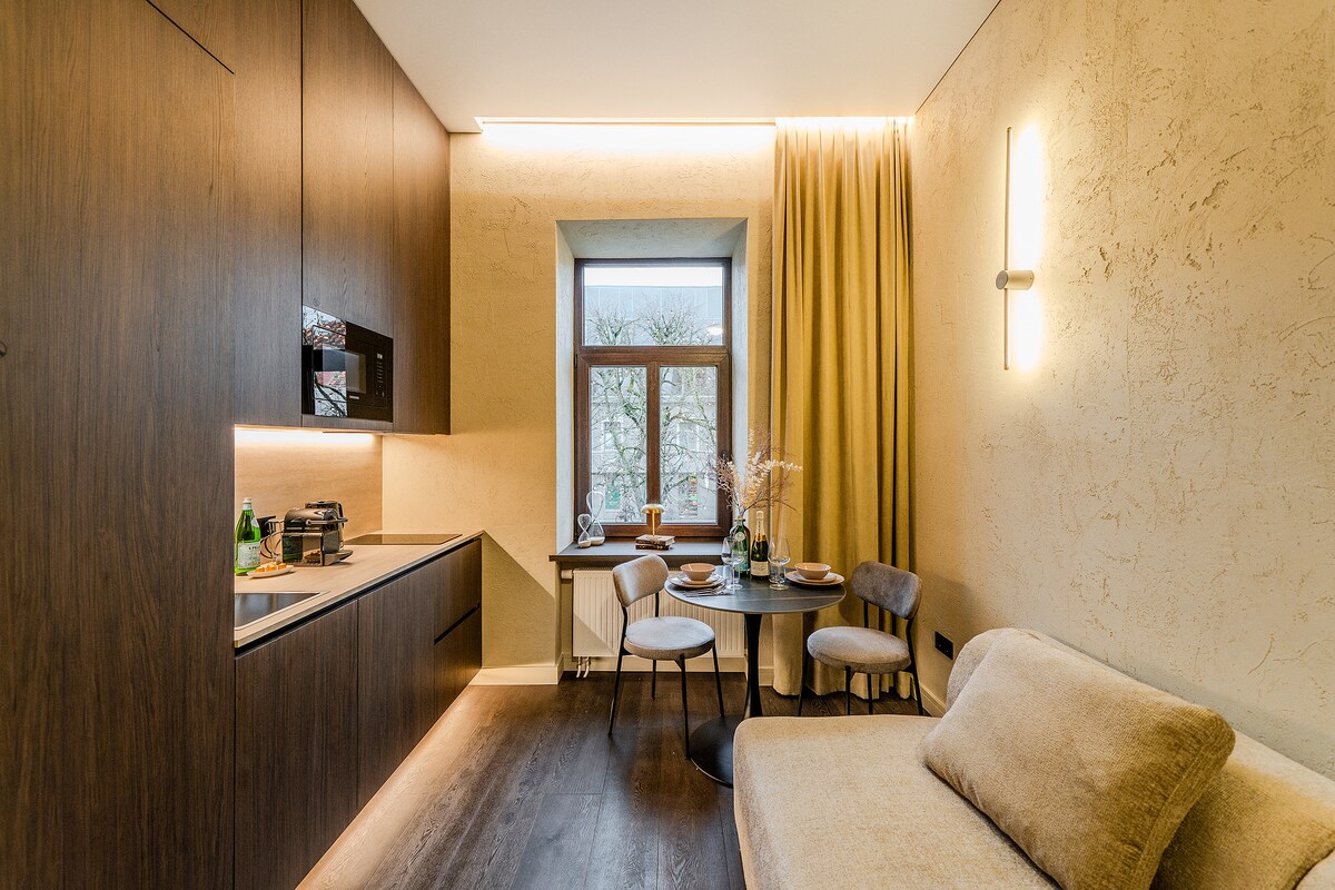 Een perfecte keuze voor diegenen die de authenticiteit van Kaunas waarderen, dit appartement is gelegen in de historische wijk Žaliakalnis. Geniet van een rustige sfeer op slechts 5 minuten lopen van Ąžuolynas en de dierentuin, en op 15 minuten van het stadscentrum. De ruimte is met zorg ontworpen voor persoonlijk wonen en biedt alles voor een comfortabel verblijf. Voorzieningen zijn onder andere een ontbijtbar en lounge op het balkon, premium matras, twee parkeerplaatsen (één in een ondergrondse garage met EV-opladen)