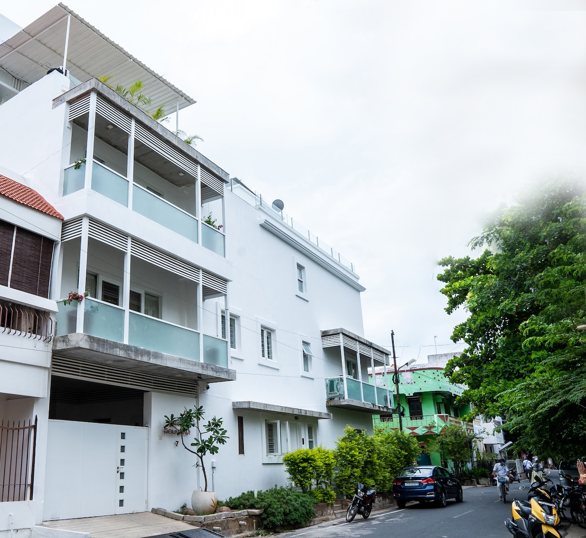 Een van de meest premium 1 bhks in het hart van French Town. Er is een luxe kamer met aangrenzende badkamer. De kamer heeft een inloopkast en een breed balkon. De woonkamer is aan de overkant van een gang. Het heeft een flatscreen-tv, een waterkoker met thee, koffie en melkpoeder, een koelkast, een broodrooster, een magnetron, een inductiekookplaat met een aantal basisgerei. Deze unit bevindt zich op de 1e verdieping van Maison Souvenir. We hebben nog vier andere eenheden van verschillende grootte in het gebouw.