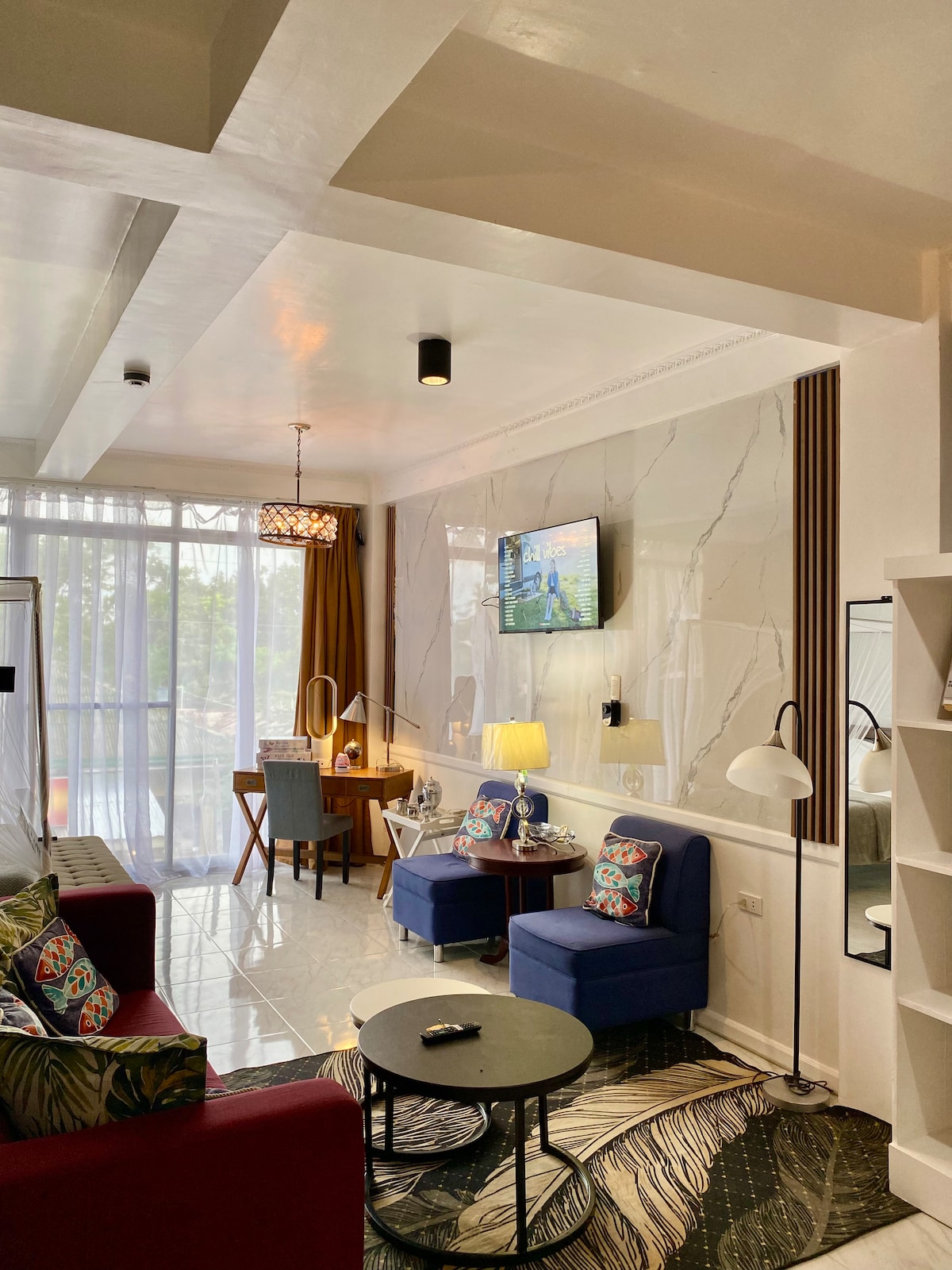 Exclusieve villa met 1 slaapkamer op een privéterrein van 300 vierkante meter in Libertad. Twee verdiepingen tellende woning met hoge plafonds, airconditioning overal, volledig moderne keuken. Enorm privézwembad + uitgestrekt terras omgeven door weelderige rijstvelden met oceaanzichten van boven. Slechts 10 minuten rijden naar het wereldberoemde Cloud 9 en General Luna. Snelle wifi met speciale werkruimte. Isabel is ontstaan uit onze liefde voor Siargao. Gemaakt voor ultieme serene eilanduitjes, het werd tot leven gebracht door getalenteerde lokale bouwers.