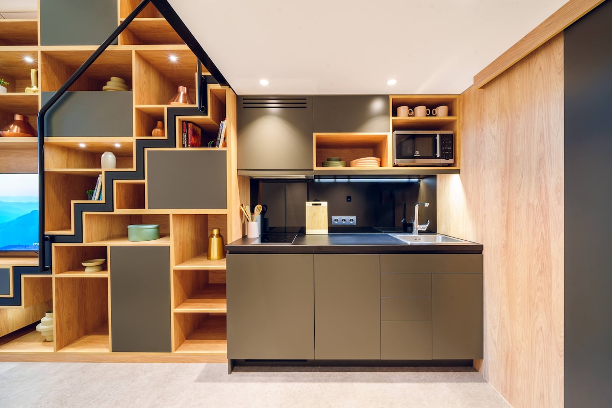 Appartement van 40 m2 ontworpen voor Airbnb en ook uitgerust voor langere verblijven. Parkeerplaats voor het gebouw. ('s nachts en in het weekend gratis) - 2 metrolijnen op 100 m - Airconditioning in de Amerikaanse keuken - Snelle WIFI (500 MB) - Comfortabele bedden - 2 aparte kamers - treinstation is 50 m - supermarkt in het gebouw - volledig uitgeruste keuken - toegewijde hosts :) - ophalen van de luchthaven kan geregeld worden - toegankelijk met elektronisch codeslot. - rustig en vredig:)