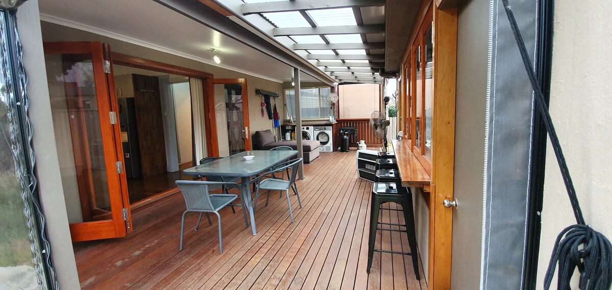 Gelegen in een rustige straat in Bathurst met 2 ruime slaapkamers (1 slaapkamer met eigen woonkamer). Met een keuken, eethoek en zithoek, achterdek en een kleine wasserette (bij de achterdeur). Het is het hoofdhuis op het terrein ( het huisje ernaast is NIET inbegrepen). 1 auto off-street parkeren is voorzien: voor het huis. 1 blok naar een café, op een paar minuten rijden van winkels, Bathurst Golf Club en CSU. Geniet van je ontspannende plattelandsleven in Bathurst!