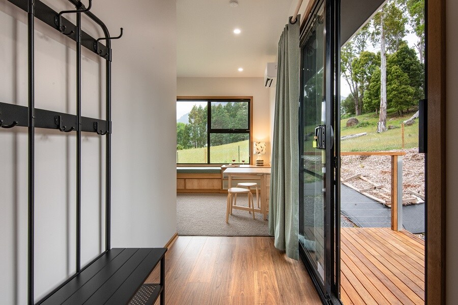 Eagles Nest III – Deze accommodatie, winnaar van de Tasmanian Tourism Award voor unieke accommodatie in brons in 2025 en 2024, biedt de meest verbluffende uitzichten en spa's en is gunstig gelegen in de buurt van Cradle Mountain. Het biedt een gezin van vier, of één of twee stellen, de mogelijkheid om even te ontsnappen aan de drukte van het dagelijkse stadsleven. Prachtig uitzicht, prachtig ingerichte accommodatie, spa's, open haard, hangmatten buiten, melkbad buiten, verzonken tafel op vloerniveau, extra chef-kok en massagediensten op verzoek beschikbaar.