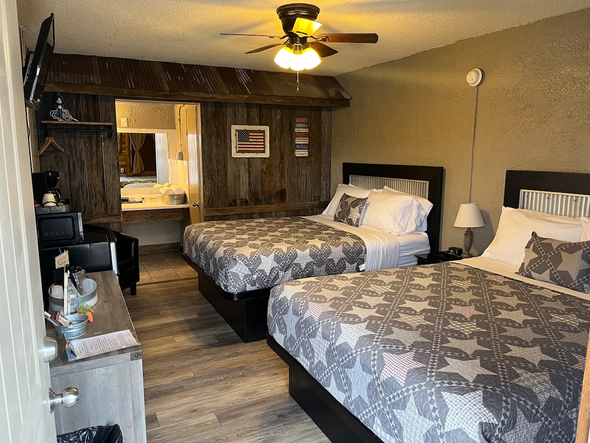 Twin Lakes Creamery, Grill & Inn ligt in de buurt van het centrum van Leitchfield en biedt bijgewerkte kamers, elk met een eigen badkamer. Deze *kleine* kamer van 175 m ² beschikt over een full-size matras met kussens, een koelkast, een magnetron, een koffiezetapparaat en een 32-inch tv met Hulu Live-tv en Netflix. De eigen badkamer is voorzien van een inloopdouche. We zijn op een geweldige centrale locatie ten opzichte van Elizabethtown, Mammoth Cave, Rough River en Nolin Lake. Bekijk onze 250+ positieve recensies van onze andere accommodaties!