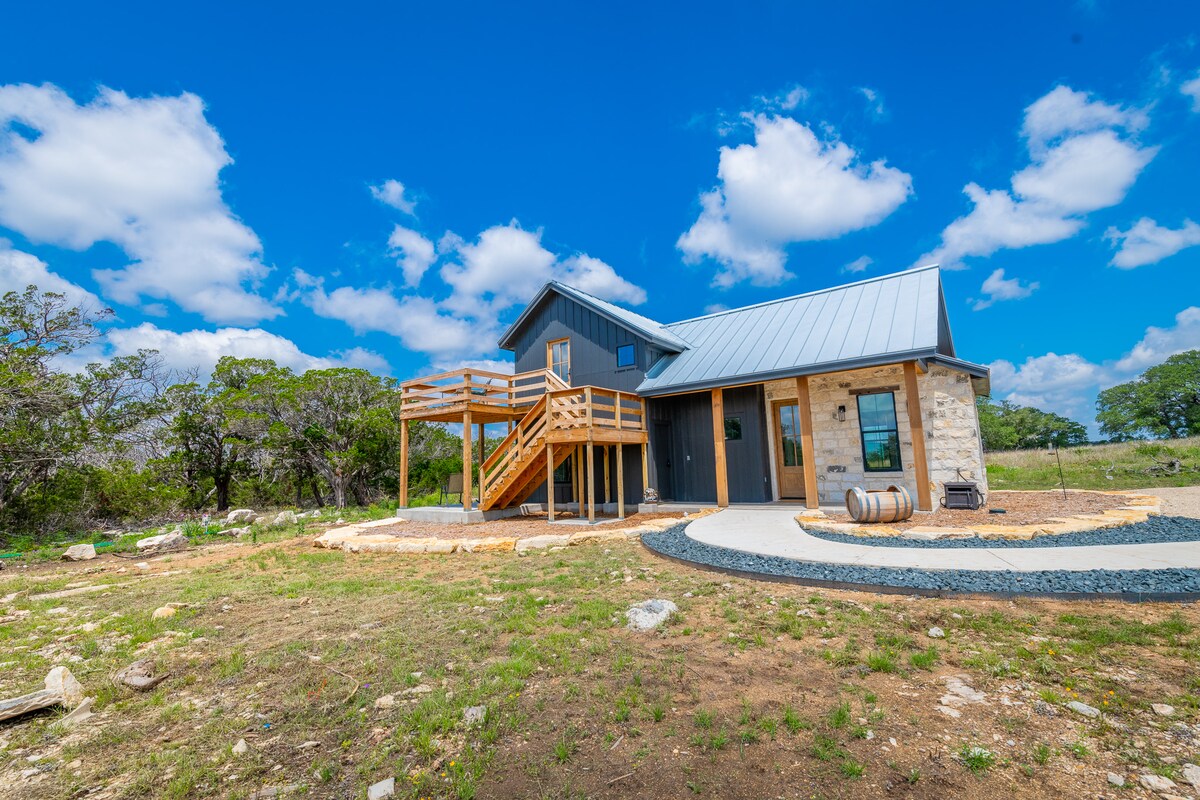 Wees onze gast! Nieuw verbouwd huisje - ontspan op het achterdek en geniet van een adembenemend uitzicht op het Texas Hill Country. Keukentje is voorzien van: koelkast, magnetron, broodrooster, barbecue, koffiezetapparaat (koffie, room en suiker aanwezig), servies, bestek en queensize bed. Wifi en Roku TV inbegrepen. Ontspan in de jacuzzi. We liggen op slechts 4 minuten rijden van de populaire Ingram Lake Dam en op 40 minuten rijden van Fredericksburg.