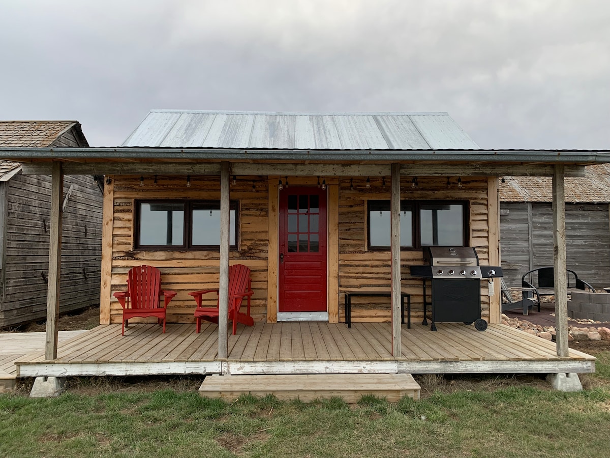 Nestled amongst a bank of old grain bins, lies a gem of the prairies. It takes you back to a time when this country was settled and many settlers started out their homesteads in a grain bin. This one marries the past with a bit of a flair and provides a nice little Hidden Homestead on the prairies. This off grid cabin has solar power, water and an outhouse. propane stove, heater, bbq outside and fire pit, no fridge, bring a cooler. Shower facilities are available at the main house between 7-9.