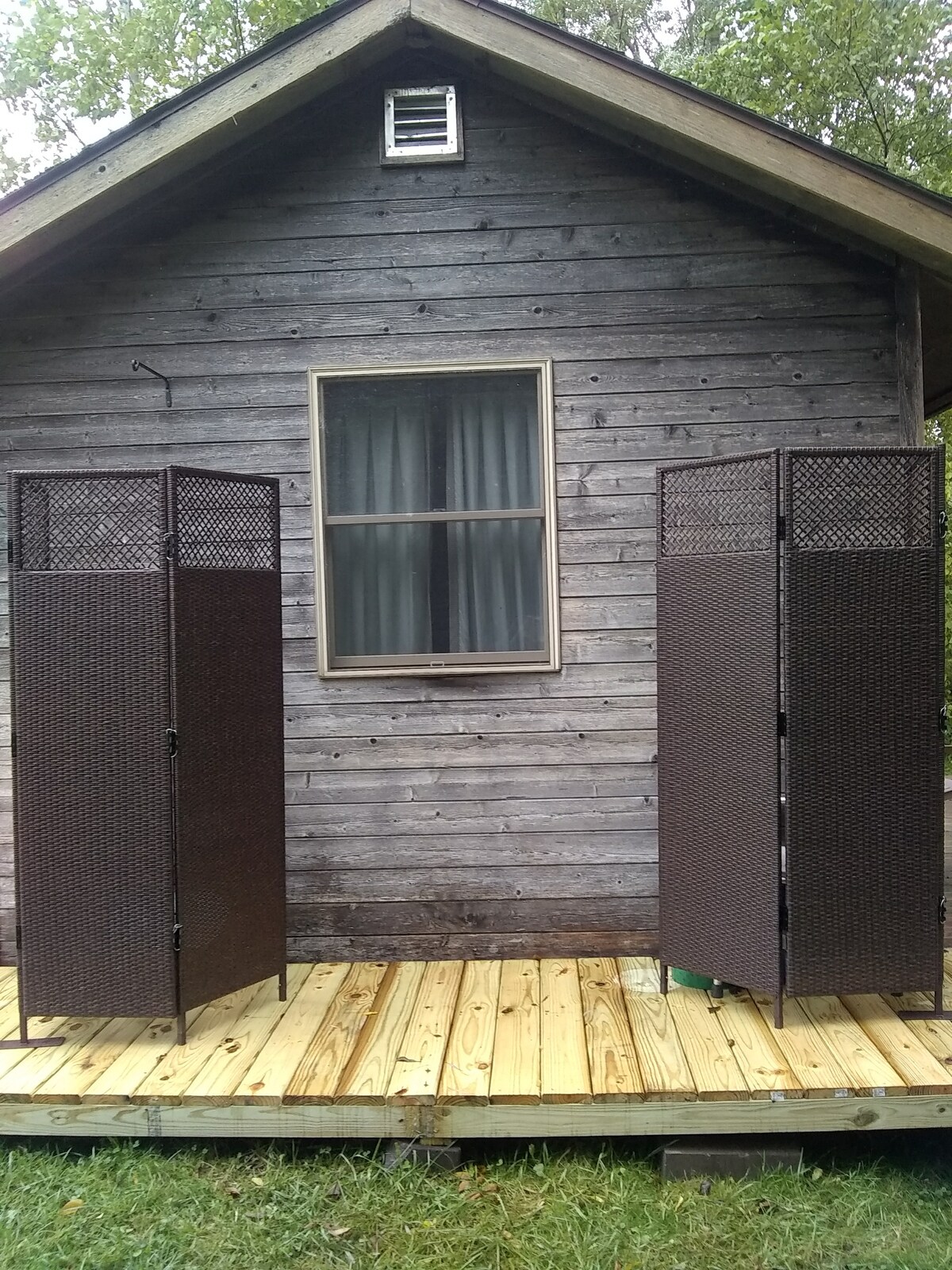 The perfect place for 1-2 guests to unplug and relax in this beautiful, natural setting. It's a short distance (less than 2 min. walk) from the parking area to this quiet, private, 12'x14' one-room cedar cabin set on a pasture with picture-window view of wooded bluffs and stream, birds and other wildlife. Writing table and chair, glider rocker, woodstove, and gas cookstove. Solar-powered desk lamp. Port-a-potty and solar shower outside (summer only). Fire pit and outdoor seating.