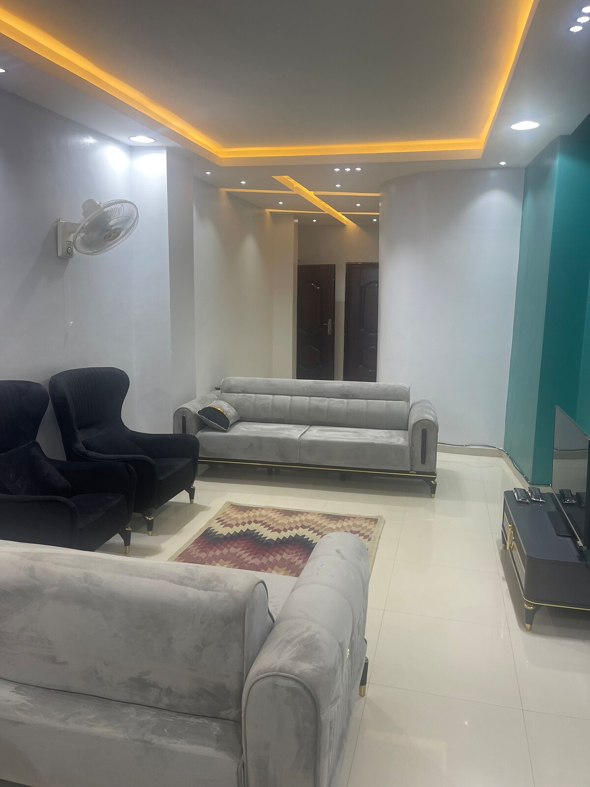 Een prachtig volledig gemeubileerd appartement met één slaapkamer te huur in Khartoum 2: * Stand-bygenerator. * Volledig uitgeruste keuken (magnetron, fornuis, waterkoker, broodrooster, koffiezetapparaat,..). * Automatische wasmachine. * Ruime slaapkamer en woonkamer. * Smart TV. Het appartement is op de tweede verdieping in een gloednieuw gebouw dat dicht bij KFC/PIZZA HUT, Ozone cafe en 4 minuten rijden naar Khartoum International Airport.