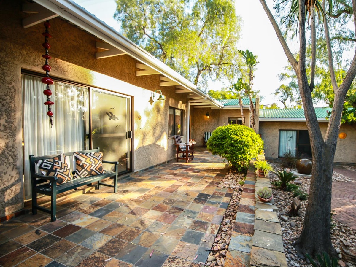 Geniet van dit prachtige appartement gelegen in het centrum van Windhoek, Namibië – De glimlach op het gezicht van Afrika! Geïnspireerd door onze liefde voor dit prachtige land, hebben we een warme en uitnodigende ruimte gecreëerd die gasten onderdompelt in de unieke charme en cultuur van Namibië. Of het nu voor een zakelijk team of gezinsuitje is - onze toevluchtsoord wacht op je om onvergetelijke avonturen te beleven. Op vakantie of zakenreis - geniet van de adembenemende landschappen, proef de lokale gerechten, winkels in de buurt en rust dan uit in onze gezellige plek.