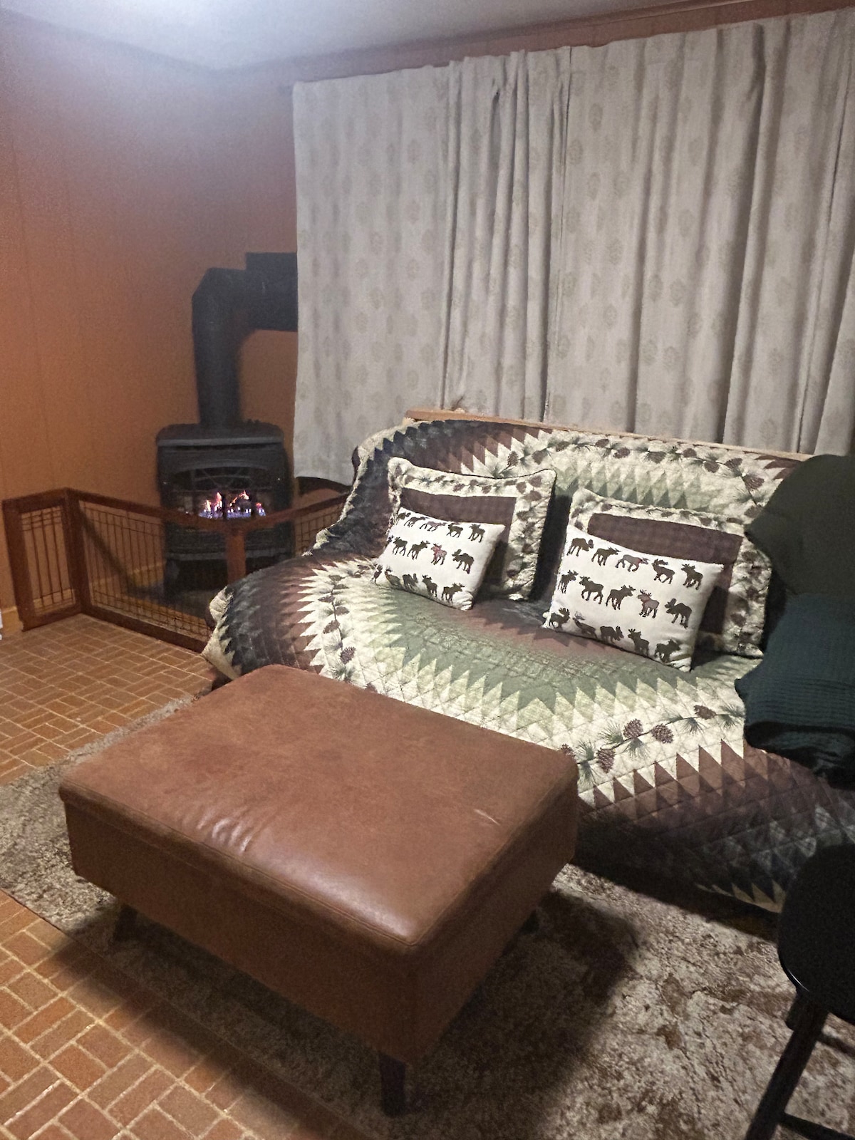 Een 2 slaapkamer, een badhuisje in het bos dat onlangs is gerenoveerd en geschikt is voor 5 personen. Een nieuwe badkamer, gezellige gashaard, wasmachine, droger en een spa voor 5 personen wachten op je aankomst. Een knoestig grenen interieur met rustieke slager blok aanrechtbladen en een afgesloten 3 seizoenen veranda om de middagen weg te ontspannen. Kom en geniet van ons afgelegen landhuisje en laat verfrist achter. Honden zijn welkom tegen een vergoeding van $ 25,00 per hond - maximaal twee honden. Minimaal twee nachten is vereist voor alle verblijven. Maximaal vijf gasten.