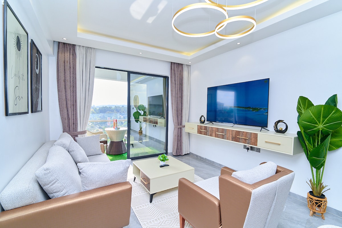 Stap in ons luxe moderne appartement met één slaapkamer in het hart van Kileleshwa, waar comfort ontmoet elegantie. Geniet van een adembenemend uitzicht vanaf je eigen balkon en kom tot rust in een serene woonkamer met een zachte bank en WERKRUIMTE. Vermaak je met onze 55-inch UHD smart tv en GRATIS NETFLIX. Een volledig uitgeruste fitnessruimte, 24/7 CCTV-bewaking die je veiligheid garandeert. Geniet van culinaire hoogstandjes met onze gevulde kitchenette en verken nabijgelegen bezienswaardigheden,winkelcentra en het CBD op slechts enkele minuten afstand.