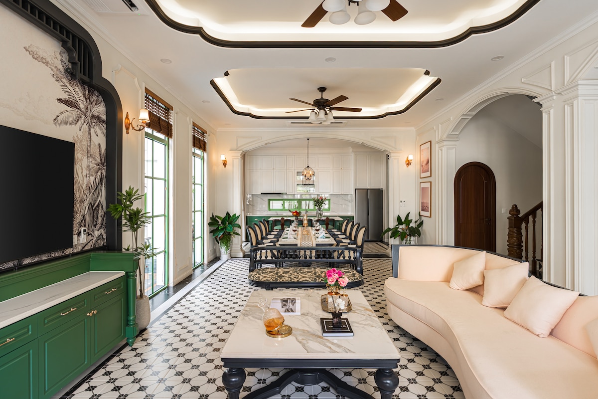 Evelyn Villa 3 in Sun Tropical Village is een serene resortvilla in de buurt van Khem Beach, Phu Quoc, perfect voor gezinnen en vrienden. Het beschikt over 4 ruime slaapkamers met luxe beddengoed, een grote woonkamer met een tv, een volledig uitgeruste keuken en een wasmachine. Geniet van het privézwembad, de tuin en het terras, allemaal met gratis wifi. Op slechts 10 minuten lopen van Khem Beach en op 20 minuten van de luchthaven, ideaal voor rustige, langere verblijven.