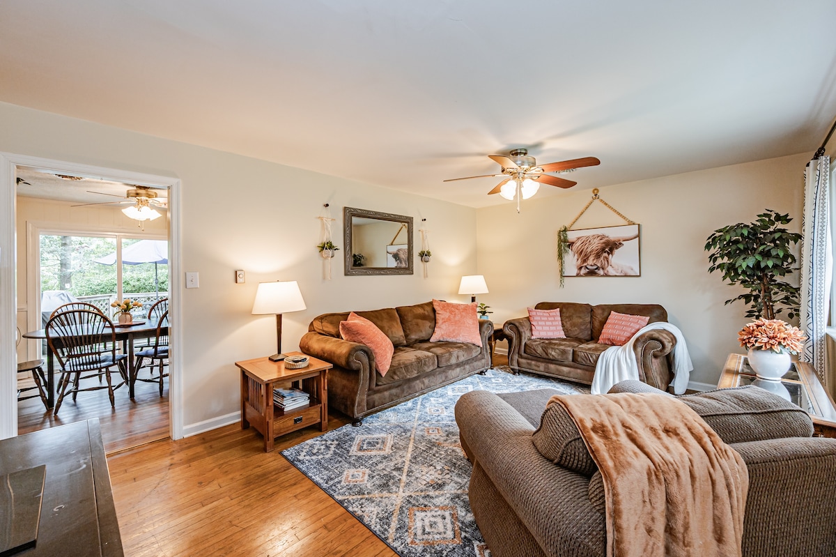Welkom bij Kelly's Cottage, een charmant toevluchtsoord genesteld tussen eeuwenoude eiken in een rustige buurt. Deze gezellige bakstenen rancher uit het midden van de 20e eeuw biedt warmte en comfort die je niet vindt in moderne woningen. Geniet van een kopje cacao bij het kampvuur in de lente of herfst, of verken nabijgelegen bezienswaardigheden, waaronder lokale wijnmakerijen, restaurants, microbrouwerijen en slagvelden uit de Burgeroorlog. Huisdiervriendelijk met een ruime achtertuin, Kelly's Cottage is de perfecte plek om te ontspannen en te genieten van de schoonheid van het gebied!