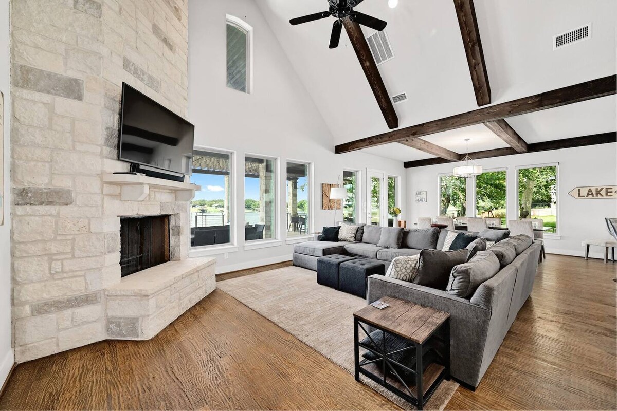 EEN DAG IN HET LEVEN BIJ BURL WOOD CABIN Geniet van het leven aan het meer in deze onlangs gerenoveerde woning met prachtige uitzichten. Breng de dag door met vissen vanaf de privépier, kajakken of zwemmen vanuit je achtertuin. Ontspan op het schaduwrijke terras, grill het diner en ontspan bij de open haard. Met ruimte voor zes personen, een volledig gevulde keuken, EV-oplader en veel buitenplezier, is deze retraite perfect voor familie- of vriendelijk avontuur op Lake LBJ. Houd er rekening mee dat er momenteel wordt gebouwd aan het huis ernaast.