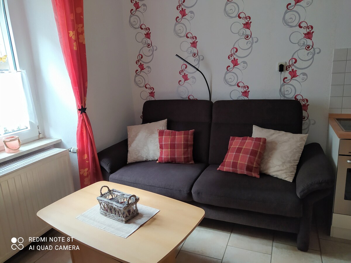 Het appartement heeft een bijzondere sfeer ... een mix van oud en nieuw en de kamers versmelten in elkaar. Je komt eerst de eethoek binnen en kijkt door de lichte woonkamer met het weids uitzicht op de Eifel. Twee treden naar beneden kom je in de gezellige woonkamer met een grote bank en dan vind je het slaapgedeelte met een tweepersoonsbed (160x200cm) en een stabiel stapelbed voor kinderen en volwassenen. Dinsdag tot zondag ontbijt mogelijk in ons café/bistro. Sauna, Ebike verhuur