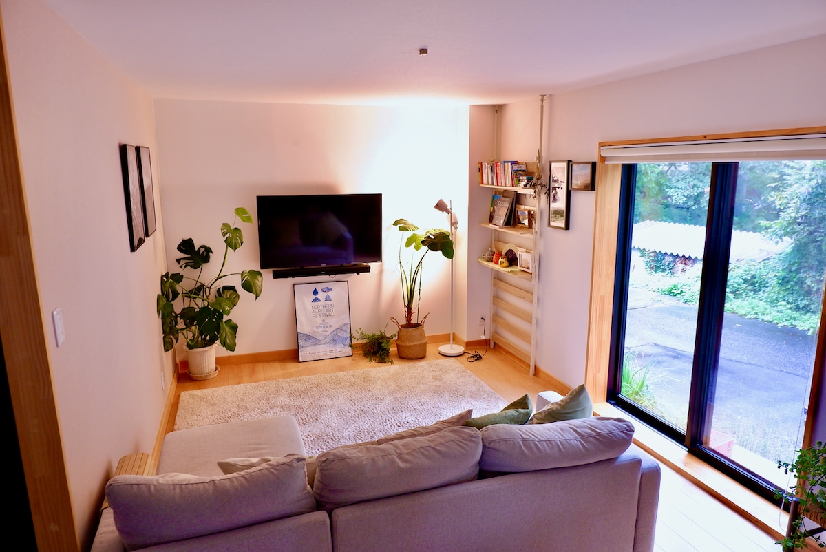 SANU2nd Home is een huis waar lichaam en geest rustgevend en verstandig zijn. Een beetje ver van het drukke stadsleven. Het is een tweede thuis om de natuur te voelen met je zintuigen en met je eigen handen te leven. Voel je vrij om je tijd door te brengen. Probeer in ieder geval de juiste manier voor je te vinden.Ontspan en kom tot rust in deze rustige en stijlvolle ruimte. Hakuba Village ligt in het noordwestelijke deel van de prefectuur Nagano en wordt omgeven door de bergen van de Japanse Alpen en is rijk aan natuur, met prachtige landschappen die veranderen met de seizoenen, en veel mensen bezoeken het als skigebied in de winter. In de winter is de wereld bedekt met zilver, en van de lente tot de zomer kun je genieten van trekking en wandelen in de bergen omringd door nieuw groen. In de herfst kun je de zeldzame 'drietraps herfstbladeren' in Japan zien, met besneeuwde bergtoppen, bomen met rode bladeren op de hellingen en coniferen aan de basis. Hakuba Village, waar heldere lucht en majestueuze natuur naast elkaar bestaan, is een bijzondere plek om de drukte van de stad te vergeten en je hart in stilte te genezen.