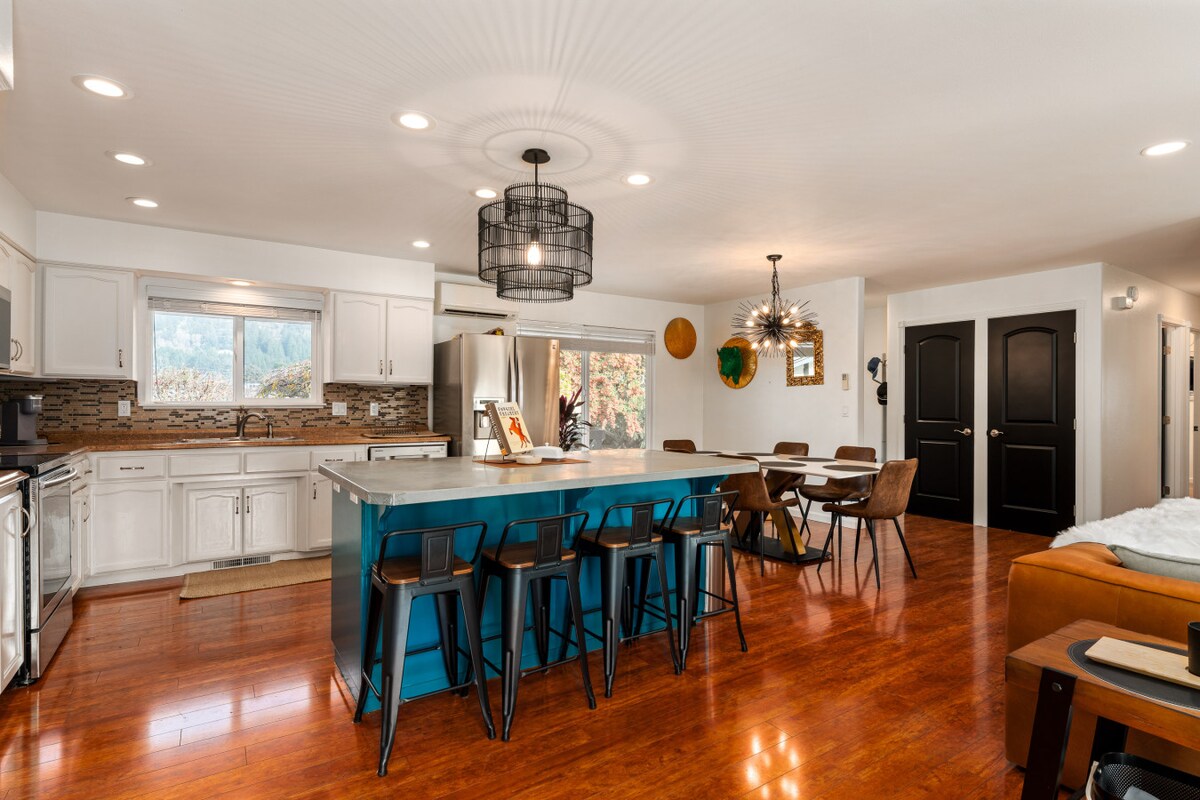 The Aloha House is located just above the University and only 1.5 miles from downtown Ashland. Nestled up a hill in the forest, you'll be transported to your own little private resort-like getaway with stunning views, architectural design that brings the outdoors in, and ample space for dining and entertaining poolside. The property consists of two separate studios (both included) connected by a unique outdoor living space with a seasonal pool, spa, outdoor shower, bar & BBQ, and more!