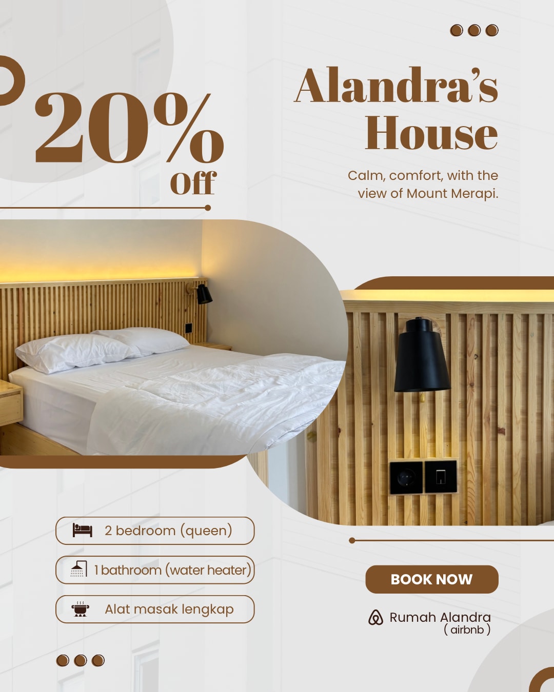 Griya Mandara Prambanan, een traditionele Javaanse villa in joglo-stijl gecombineerd met een moderne twist. Het heeft 3 slaapkamers met airconditioning, 2 moderne badkamers met waterverwarmers, Netflix-tv, volledige keuken. Deze villa ligt op slechts 5 minuten van de Prambanan-tempel en is een ideale keuze voor degenen die historische culturele bezienswaardigheden willen verkennen, zoals de Ijo-tempel, de Plaosan-tempel, de Ratu Boko-tempel en de Breksi-klif.
