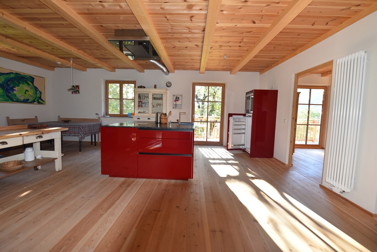Welkom in het panoramische appartement "hart & uitzicht" - paradijs met uitzicht – in het ecologische houten huis. In de bergen thuis – midden in de natuur - rustige panoramische locatie met een fantastisch uitzicht op Merano en omgeving – zonnebaden – prachtig om verliefd op te worden - romantisch – betoverend - uniek! Het panoramische appartement "hart & uitzicht" is een open zolder van 70 m2 met luxe apparatuur en een feel-good sfeer. We kijken ernaar uit om je te zien!