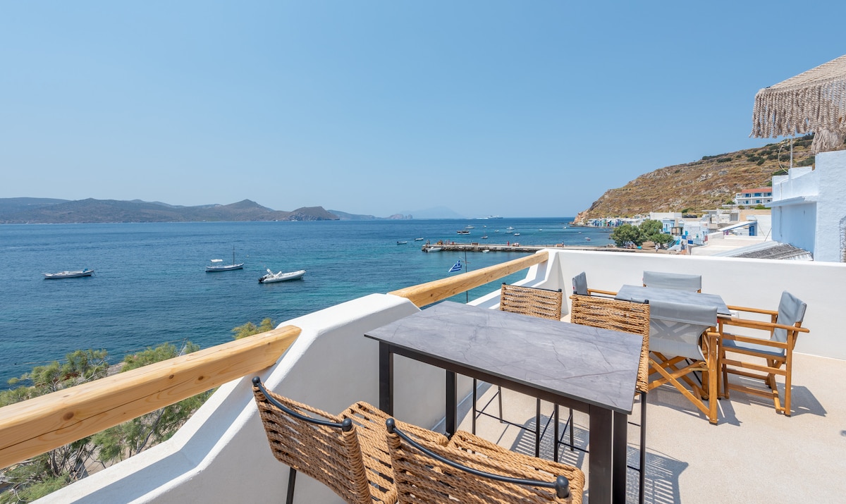 A traditional Fisherman house. One bedroom with double bed.Fully equipted bathroom. In the living room (bed/sofa for a 3rd visitor) you can find and a fully organized kitchen and a dining table.Balcony with amazing view to the Aegean Sea! One traditional “SIRMA” in which fishermen storage their boats for the winter. It's located into the fishermen village called Klima. Fully renovated (2019), with many traditional tips from its past. Perfect place for teleworking ... gazing at the Aegean Sea!!